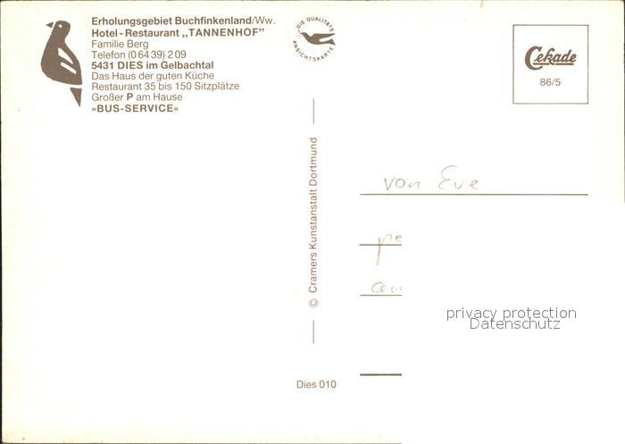 72377801 Dies Hotel Tannenhof Buchfinkenland postalisch nicht gelaufen Erhaltung siehe scans KatCode: 11110007143020