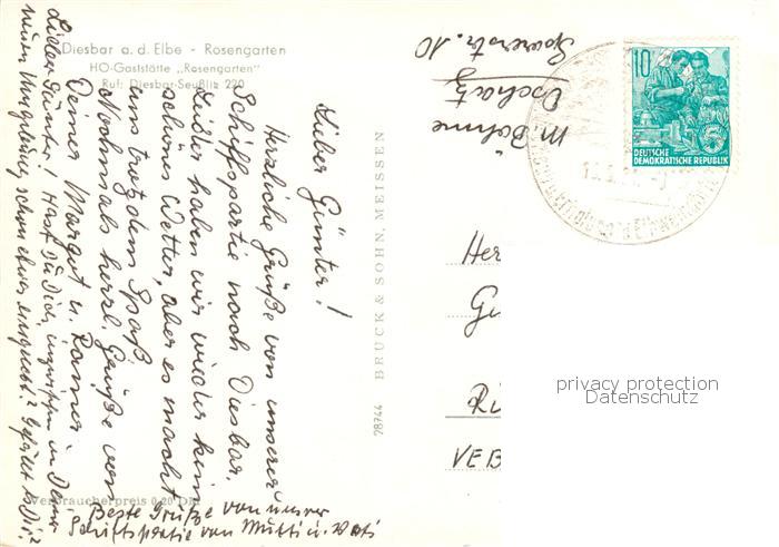 73869448 alte Postkarte Diesbar-Seusslitz HO Gaststaette Rosengarten postalisch gelaufen Erhaltung siehe scans [WerneD78] KatCode: 11110014285190