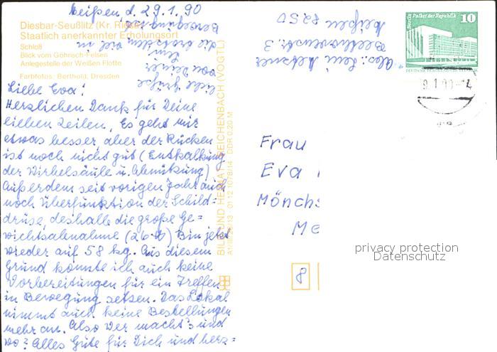 72315044 alte Postkarte Diesbar-Seusslitz Schloss Blick vom Goehrischfelsen Anlegestelle der Weissen Flotte postalisch gelaufen Erhaltung siehe scans KatCode: 11110014285190