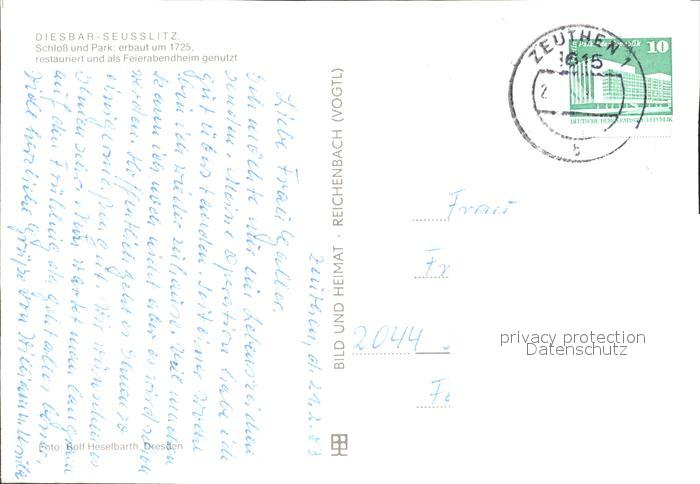 72009143 alte Postkarte Diesbar-Seusslitz Schloss und Park postalisch gelaufen Erhaltung siehe scans KatCode: 11110014285190
