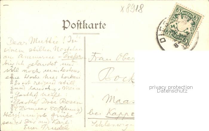 31850006 alte Postkarte Diessen Ammersee Ansicht vom See aus Segelboot postalisch gelaufen KatCode: 11110009181114