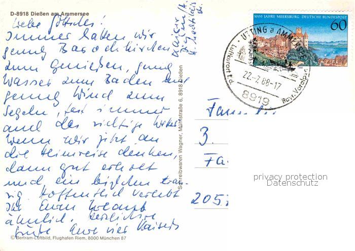 72828669 alte Postkarte Diessen Ammersee Fliegeraufnahme postalisch gelaufen Erhaltung siehe scans [NatalD47] KatCode: 11110009181114