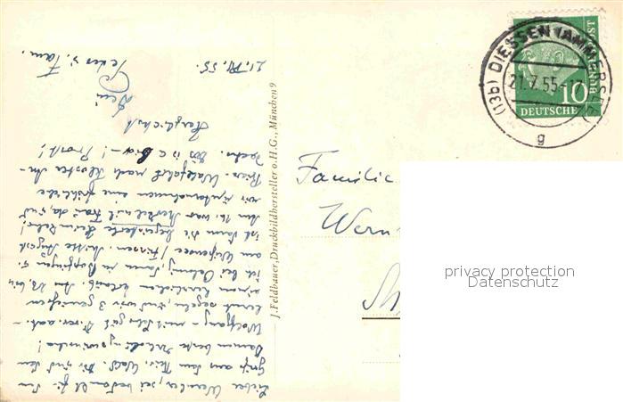 72642679 alte Postkarte Diessen Ammersee postalisch gelaufen Erhaltung siehe scans [NatalD47] KatCode: 11110009181114