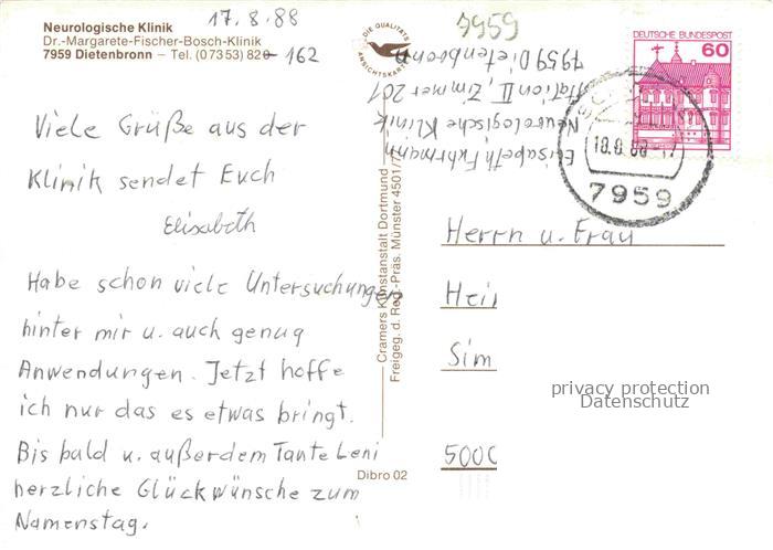 74050987 alte Postkarte Dietenbronn Schwendi Neurologische Klinik Fliegeraufnahme postalisch gelaufen Erhaltung siehe scans [WerneD78] KatCode: 11110008426108