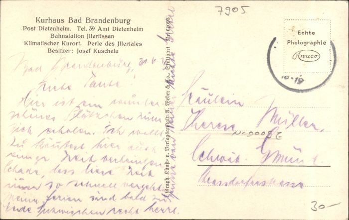 30726254 alte Postkarte Dietenheim Iller Dietenheim Kurhaus Bad Brandenburg postalisch gelaufen KatCode: 11110008425028