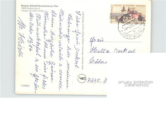 72533778 alte Postkarte Dietenheim Iller Fliegeraufnahme Kloster Schloss Brandenburg postalisch gelaufen Erhaltung siehe scans [LiesaD40 kt094box] KatCode: 11110008425028
