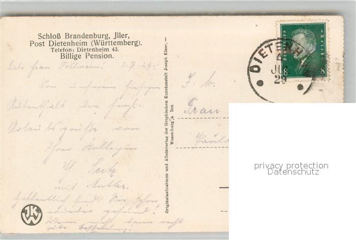 43512013 alte Postkarte Dietenheim Iller Schloss Brandenburg Lesezimmer postalisch gelaufen Erhaltung siehe scans [KathaD81] KatCode: 11110008425028