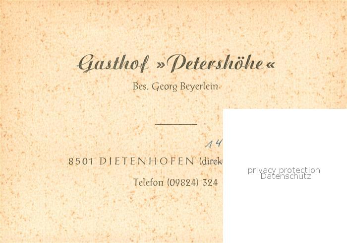 73646137 Dietenhofen Mittelfranken Gasthof Petershoehe Gaststube Terrasse postalisch nicht gelaufen Werbekarte (keine Postkarte) Erhaltung siehe scans [WerneD78] KatCode: 11110009571135