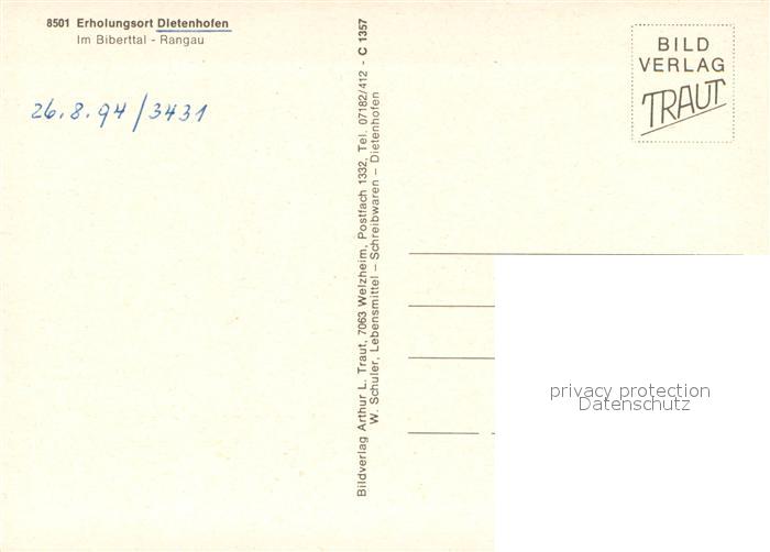 73735601 Dietenhofen Mittelfranken Panorama Biberttal Rangau postalisch nicht gelaufen Erhaltung siehe scans [FriedD77] KatCode: 11110009571135