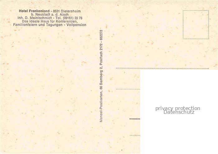 74049935 Dietersheim Mittelfranken Hotel Frankenland Restaurant postalisch nicht gelaufen Erhaltung siehe scans [FriedD77] KatCode: 11110009575119