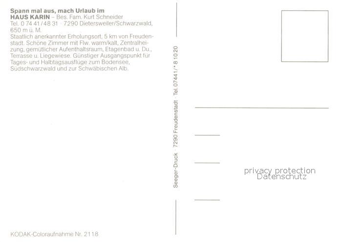 73716254 Dietersweiler Haus Karin Gaststube postalisch nicht gelaufen Erhaltung siehe scans [WerneD78] KatCode: 11110008237028