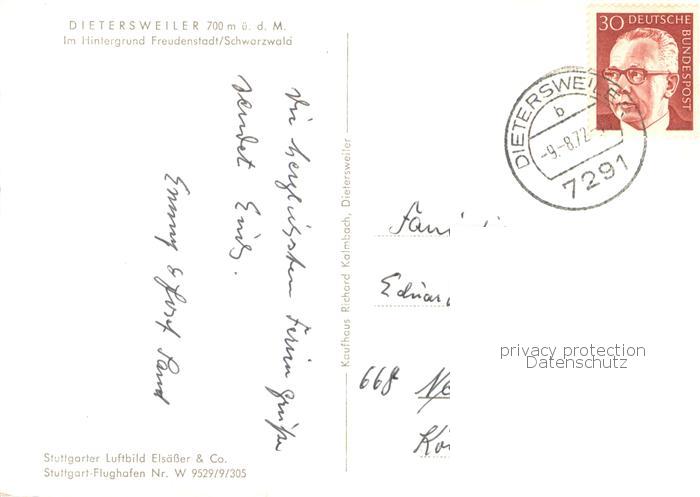 73769678 alte Postkarte Dietersweiler mit Freudenstadt im Hintergrund postalisch gelaufen Fliegeraufnahme Erhaltung siehe scans [FriedD77] KatCode: 11110008237028