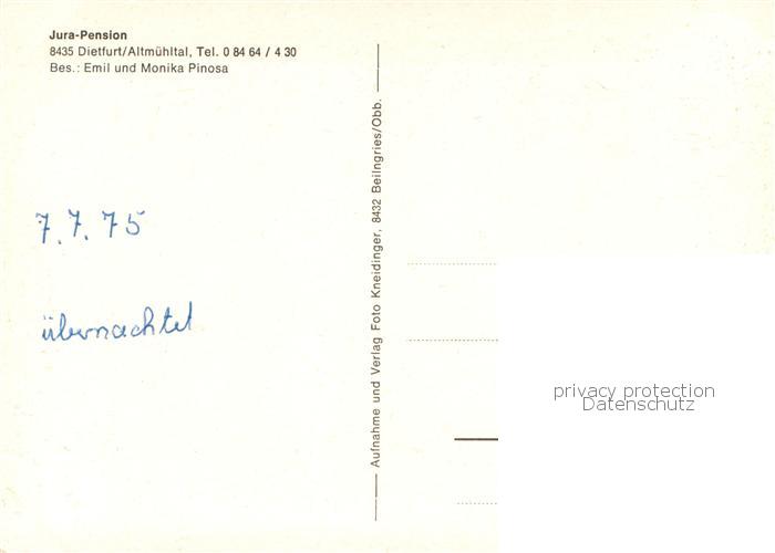 73759833 Dietfurt Altmuehl Jura Pension postalisch nicht gelaufen Erhaltung siehe scans [FriedD77] KatCode: 11110009373121