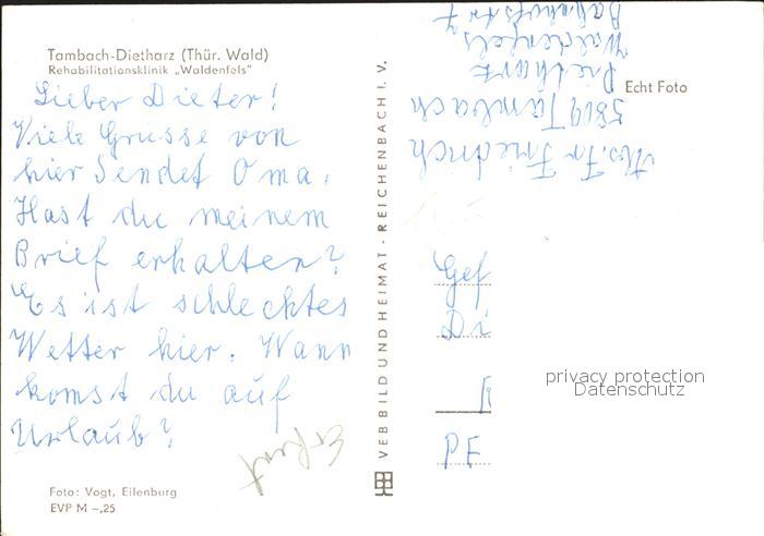 72061345 Dietharz Tambach Rehabilitationsklinik Waldenfels postalisch nicht gelaufen KatCode: 11110016067065