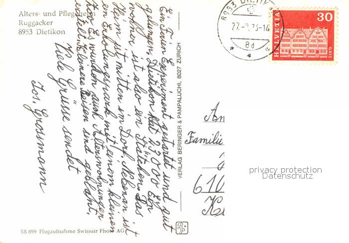 12664927 alte Postkarte Dietikon Fliegeraufnahme Pflegeheim Ruggacker postalisch gelaufen Erhaltung siehe scans [LiesaD40] KatCode: 11470260880248