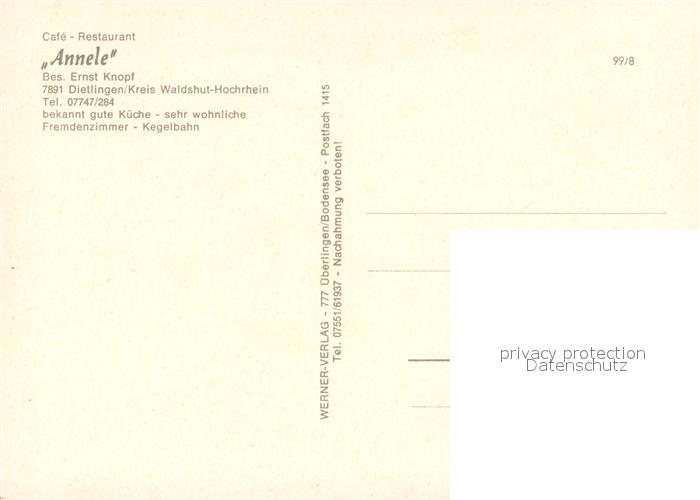 73730766 Dietingen Dietingen Cafe Restaurant Annele Fremdenzimmer postalisch nicht gelaufen Erhaltung siehe scans [FriedD77] KatCode: 11110008325011