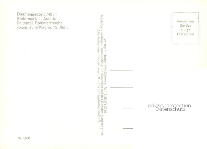 73246296 Dietmannsdorf Sulmtal Ortsansicht mit Kirche Innenansicht Landschaftspanorama Paltental Alpen postalisch nicht gelaufen Erhaltung siehe scans [FriedD77] KatCode: 11390225060302
