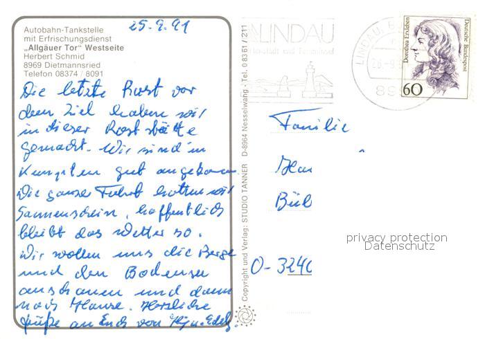 73045902 alte Postkarte Dietmannsried Autobahn Tankstelle Allgaeuer Tor Speisesaal Schloss Bunte Kuh postalisch gelaufen Erhaltung siehe scans [WerneD78] KatCode: 11110009780119