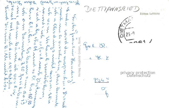 74121016 alte Postkarte Dietmannsried Oberallgaeu Bayern Ansicht mit Kirche postalisch gelaufen Fliegeraufnahme Erhaltung siehe scans [FriedD77] KatCode: 11110009780119