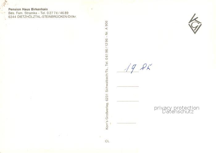 73124185 Dietzhoelztal Steinbruecken Pension Haus Birkenhain postalisch nicht gelaufen Erhaltung siehe scans [LiesaD40] KatCode: 11110006532005