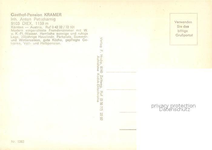 73338941 Diex Gasthaus Pension Kramer postalisch nicht gelaufen Erhaltung siehe scans [LiesaD40] KatCode: 11390213020802