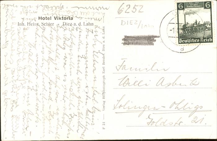 41312584 Diez Hotel Viktoria Schier postalisch gelaufen gute Erhaltung Alte Ansichtskarte Postkarte alte Postkarte hz_L Katcode 11110007141029