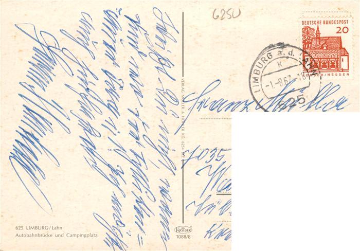 73936495 alte Postkarte Diez Lahn Autobahnbruecke mit Campingplatz postalisch gelaufen Erhaltung siehe scans [FriedD77] KatCode: 11110007141029