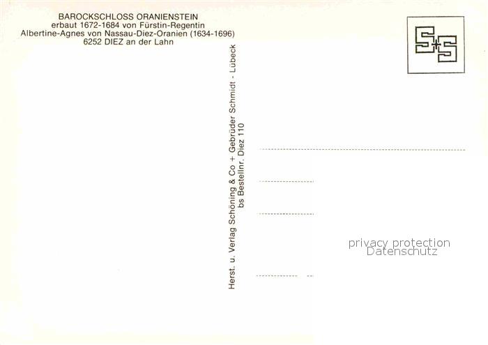 72758422 Diez Lahn Barockschloss Oraniensten postalisch nicht gelaufen Erhaltung siehe scans [KathaD81] KatCode: 11110007141029