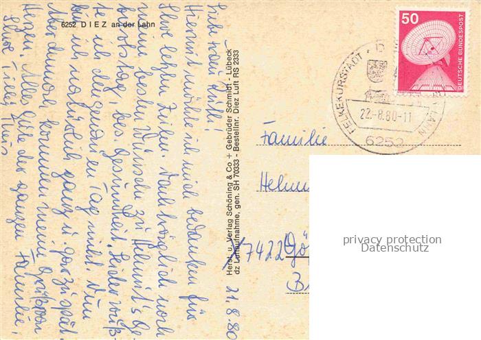 74039647 alte Postkarte Diez Lahn Fliegeraufnahme postalisch gelaufen Erhaltung siehe scans [WerneD78] KatCode: 11110007141029