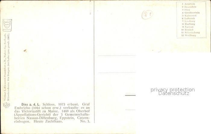 72922870 Diez Lahn Grafenschloss Diez Kuenstlerkarte G. Rothgeb. postalisch nicht gelaufen Erhaltung siehe scans [PaolaD17] KatCode: 11110007141029