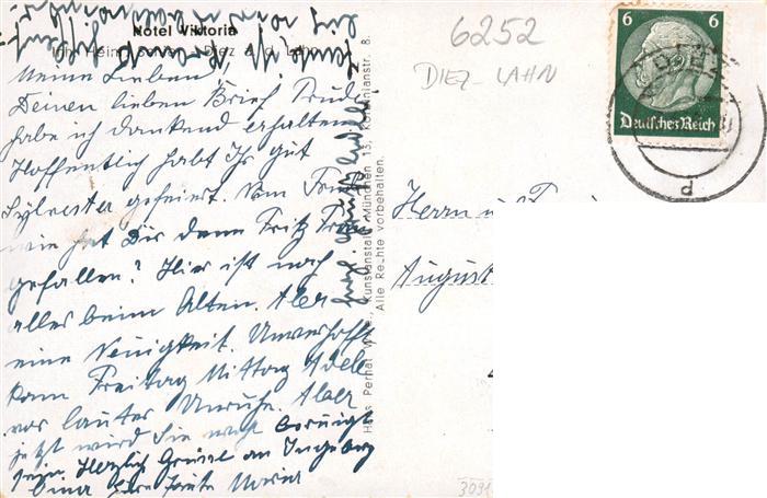 73874209 alte Postkarte Diez Lahn Hotel Viktoria postalisch gelaufen Erhaltung siehe scans [WerneD78] KatCode: 11110007141029