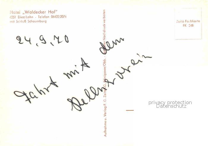 72772658 Diez Lahn Hotell Waldecker Hof postalisch nicht gelaufen Erhaltung siehe scans [AndreD76] KatCode: 11110007141029