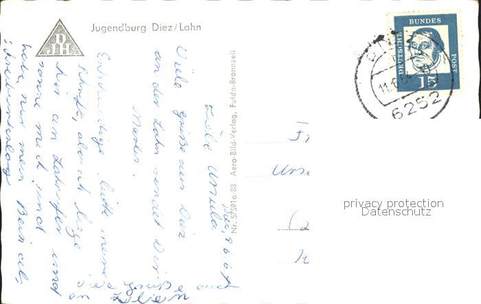 72195365 alte Postkarte Diez Lahn Jugendburg Diez Detail postalisch gelaufen Erhaltung siehe scans KatCode: 11110007141029