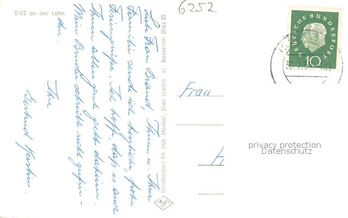 73696438 alte Postkarte Diez Lahn Panorama mit Blick zum Schloss Lahnbruecke postalisch gelaufen Erhaltung siehe scans [FriedD77] KatCode: 11110007141029