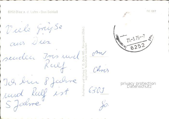 72422123 alte Postkarte Diez Lahn Schloss postalisch gelaufen Erhaltung siehe scans KatCode: 11110007141029
