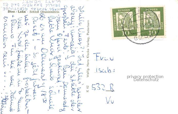 74076304 alte Postkarte Diez Lahn Schloss Oranienstein postalisch gelaufen Erhaltung siehe scans [WerneD78] KatCode: 11110007141029