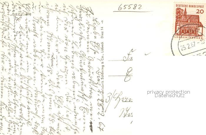 73763193 alte Postkarte Diez Lahn Schloss Panorama postalisch gelaufen Erhaltung siehe scans [WerneD78] KatCode: 11110007141029