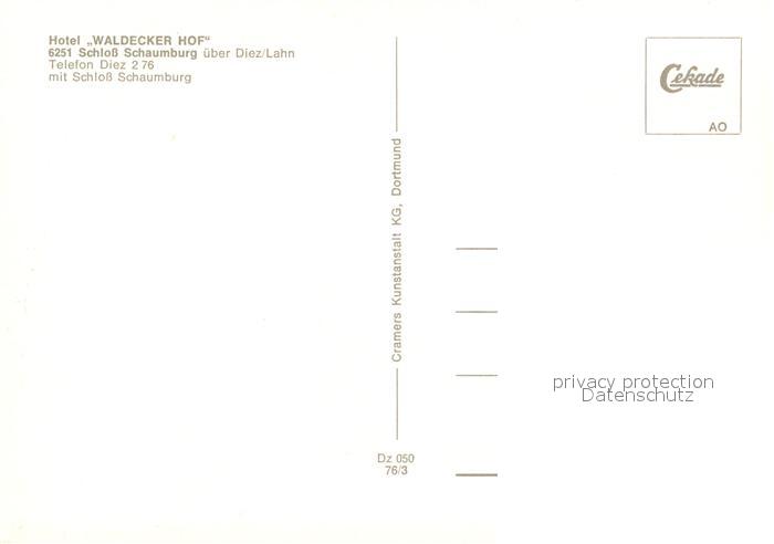 73154312 Diez Lahn Schloss-Schaumburg Hotel Waldecker Hof postalisch nicht gelaufen Erhaltung siehe scans [LiesaD40] KatCode: 11110007141029