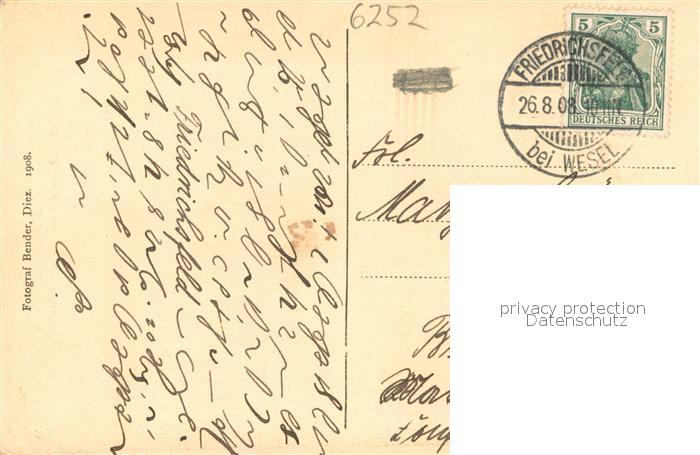 73696442 alte Postkarte Diez Lahn Schloss von der Aarbruecke gesehen postalisch gelaufen Erhaltung siehe scans [FriedD77] KatCode: 11110007141029