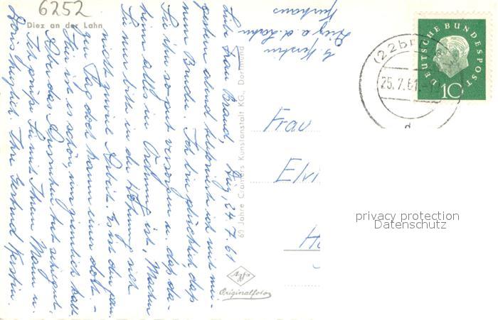 73696436 alte Postkarte Diez Lahn Stadtpanorama mit Blick zum Schloss postalisch gelaufen Erhaltung siehe scans [FriedD77] KatCode: 11110007141029