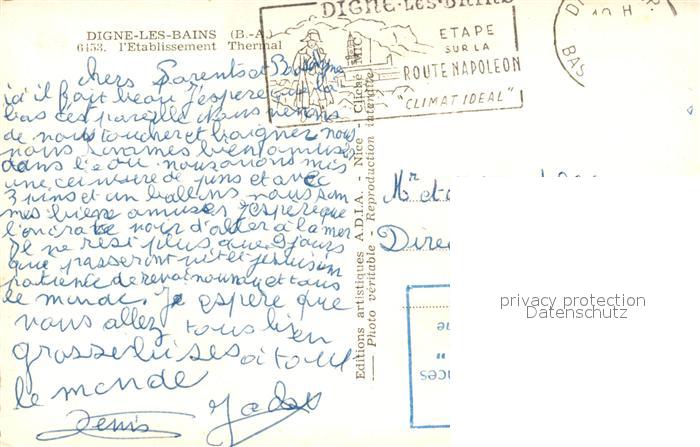13584775 Digne-les-Bains Etablissement Thermal postalisch gelaufen Erhaltung siehe scans [KathaD81] carte postale Kath Katcode 11170004304070