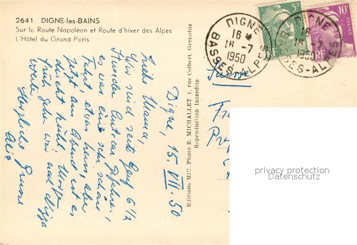13218834 Digne-les-Bains Hotel du Grand Paris sur la Route Napoleon et Route d_hiver des Alpes KatCode 11170004304070