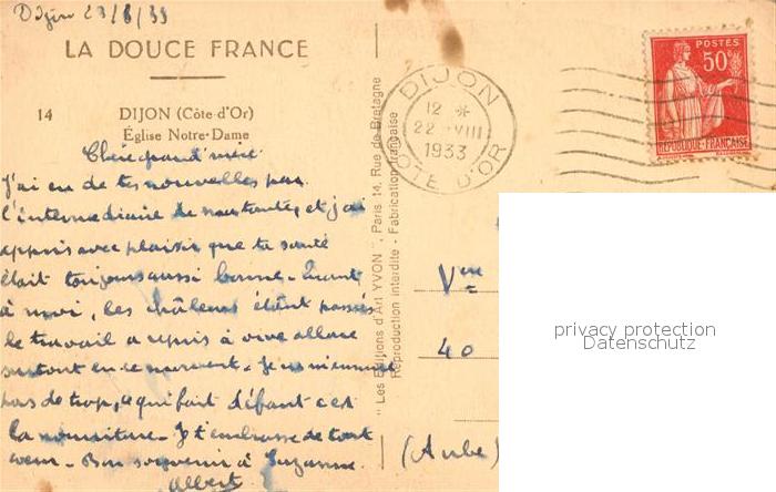 13504748 carte postale Dijon 21 Eglise Notre Dame postalisch gelaufen Erhaltung siehe scans [FriedD77] KatCode: 11170021221231