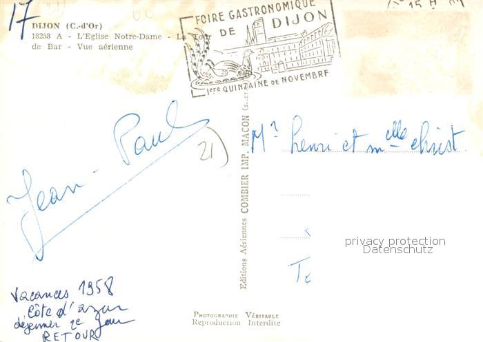13287233 carte postale Dijon 21 Eglise Notre-Dame Tour de Bar Vue Aerienne postalisch gelaufen Erhaltung siehe scans [PaolaD17] KatCode: 11170021221231