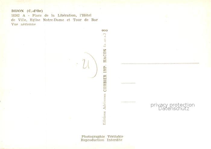 13273617 Dijon 21 Fliegeraufnahme Place de la Leberation Hotel de Ville Eglise Notre-Dame postalisch nicht gelaufen Erhaltung siehe scans [NatalD47] KatCode: 11170021221231