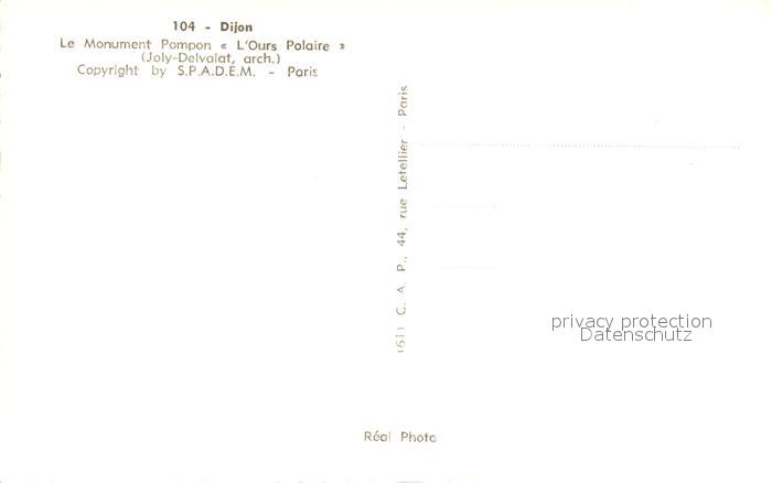 12934172 Dijon 21 Le Monument Pampon l’Ours Polaire postalisch nicht gelaufen Erhaltung siehe scans [WerneD78] KatCode: 11170021221231