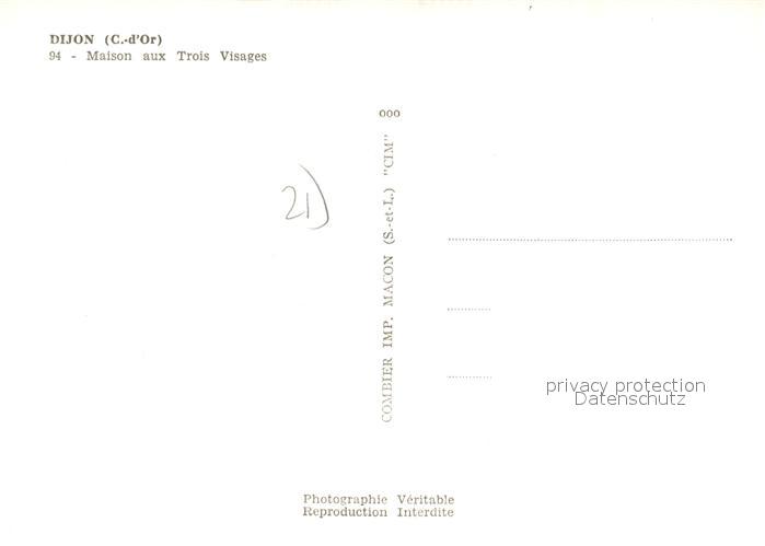 13218435 Dijon 21 Maison aux Trois Visages postalisch nicht gelaufen Erhaltung siehe scans [FriedD77] KatCode: 11170021221231