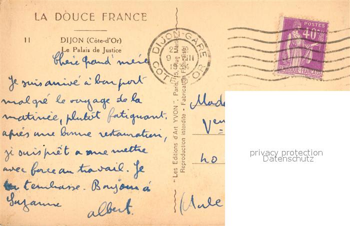 13504017 carte postale Dijon 21 Palais de Justice postalisch gelaufen Erhaltung siehe scans [FriedD77] KatCode: 11170021221231