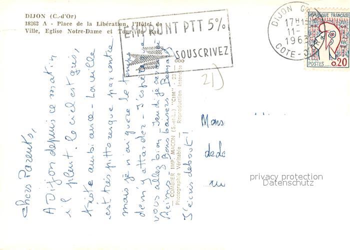 13266660 carte postale Dijon 21 Place de la Liberation Ville Eglise Notre Dame et Tour Vue aerienne postalisch gelaufen Erhaltung siehe scans [WerneD78] KatCode: 11170021221231