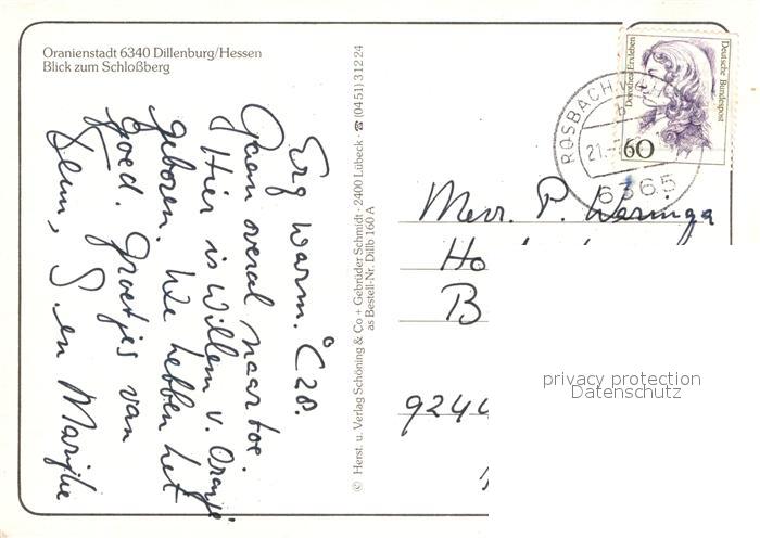 72987809 alte Postkarte Dillenburg Blick zum Schlossberg Oranienstadt postalisch gelaufen Erhaltung siehe scans [FriedD77] KatCode: 11110006532006